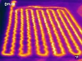 一個典型的實例是尋找地板加熱系統(tǒng)發(fā)生滲漏的位置。在紅外熱像儀的幫助下加熱系統(tǒng)的滲漏點可以被檢修人員發(fā)現(xiàn)并及時維修。精確確定滲漏點位置可以避免不必要的開挖過程,節(jié)省開支。